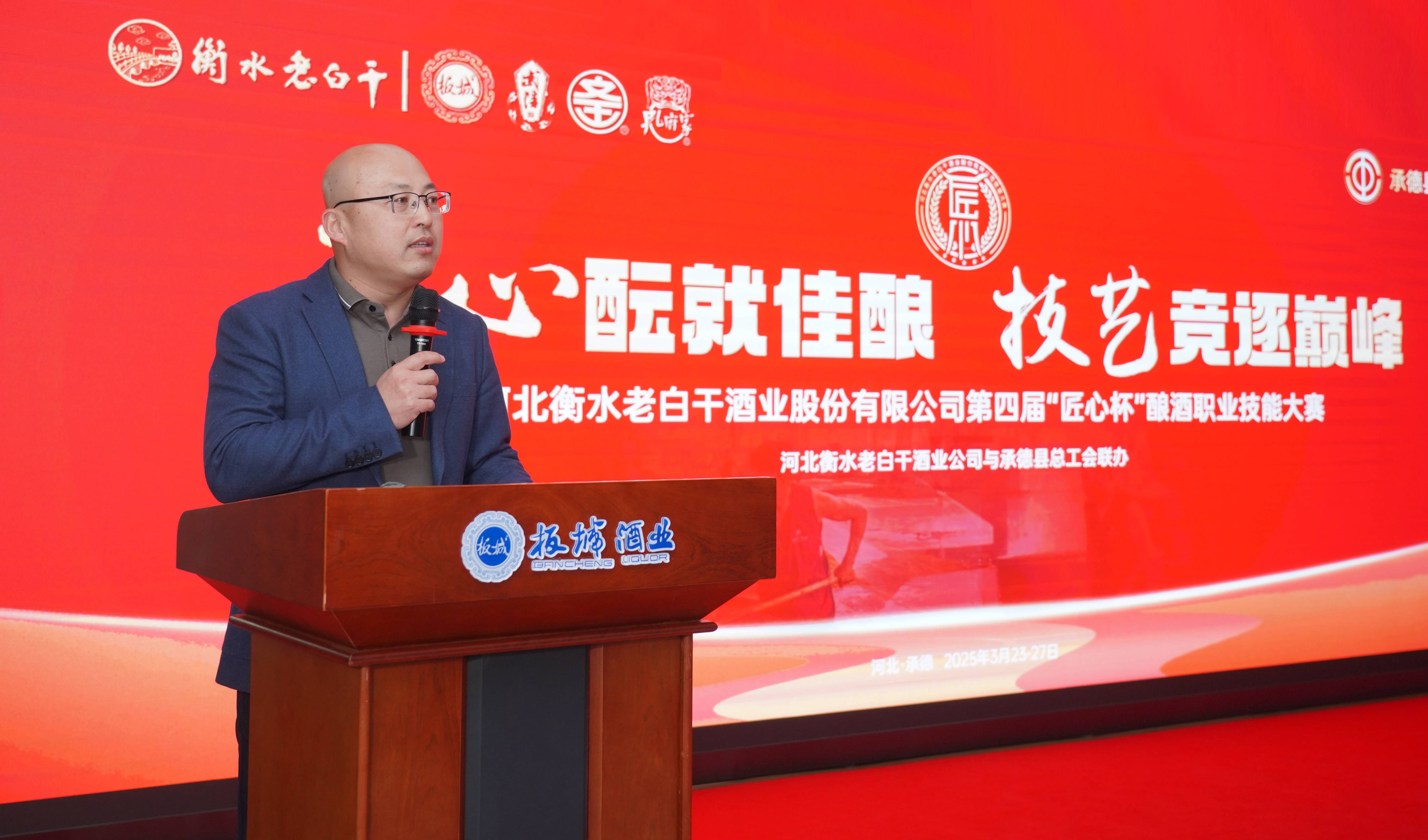 承德縣總工會黨組書記、常務(wù)副主席溫明忠在活動中致辭,他講到:“此次‘匠心杯’釀酒職業(yè)技能大賽,是老白干酒業(yè)集團為旗下五家酒業(yè)公司的‘技能大師’們搭建的切磋技藝、展示風采、傳承精神的廣闊舞臺。每一位參賽選手都是各自企業(yè)的佼佼者,他們帶來的不僅是精湛的釀酒技藝,更是對釀酒事業(yè)的無限熱愛與執(zhí)著追求。通過這場比賽,大家相互學習、相互交流,在競爭中進步,在切磋中成長,必將推動酒行業(yè)整體水平的大幅提升。希望以此次大賽為新的起點,進一步弘揚工匠精神,加強技術(shù)創(chuàng)新與研發(fā),為消費者釀造出更高品質(zhì)的美酒,為中國酒業(yè)的發(fā)展注入新的活力。”