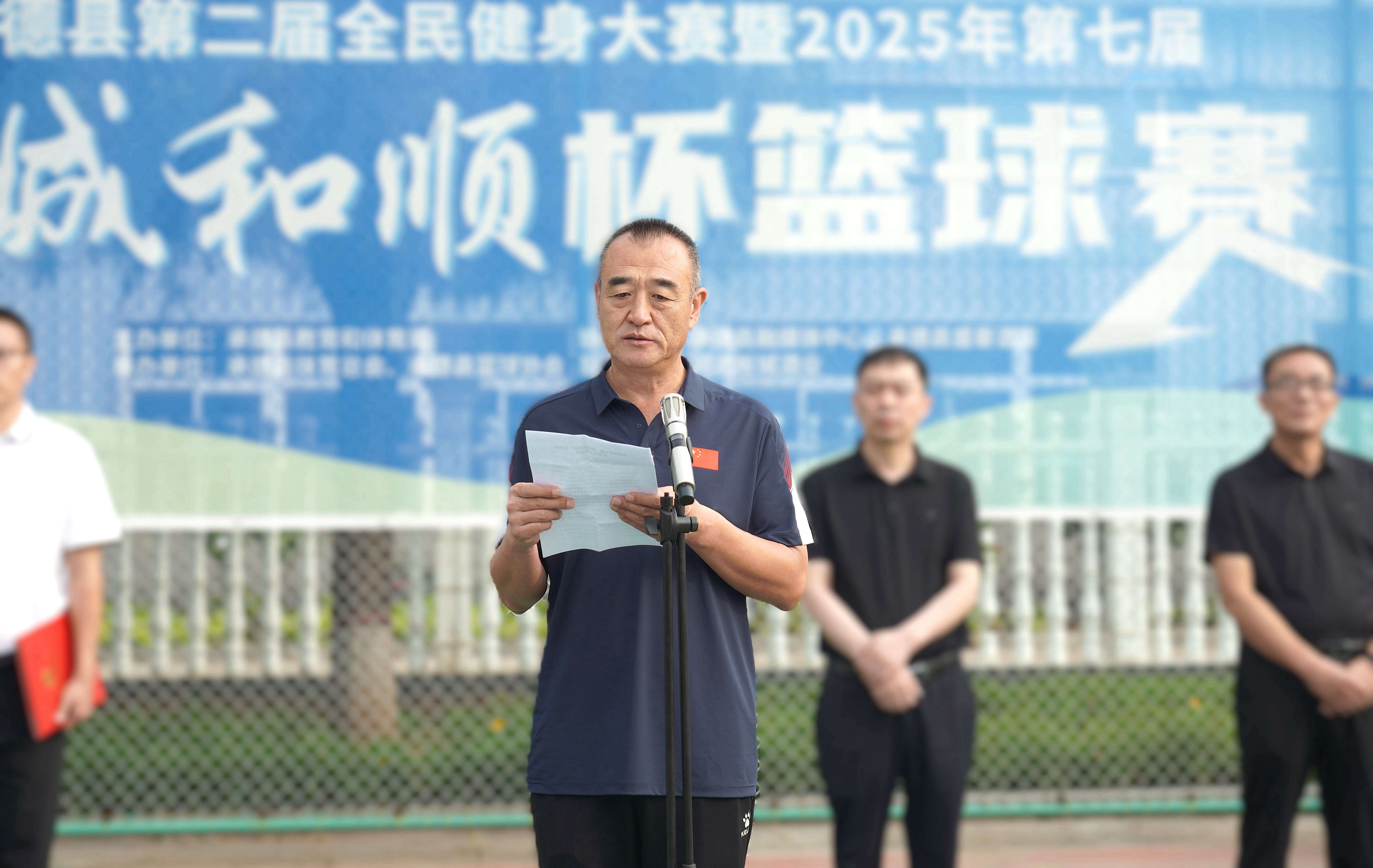 承德縣教育和體育局體育工作指導(dǎo)中心主任朱瑞東發(fā)表致辭,朱主任講到:“縣教體局聯(lián)合板城酒業(yè)持續(xù)舉辦體育賽事活動(dòng),連續(xù)舉辦七屆‘板城和順杯’籃球賽事,為承德縣全民健身提供了重要平臺,縣教體局將持續(xù)開展全民健身活動(dòng),搭建全民健身平臺,開展形式多樣的體育活動(dòng),讓承德縣人民參與多種體育賽事。”